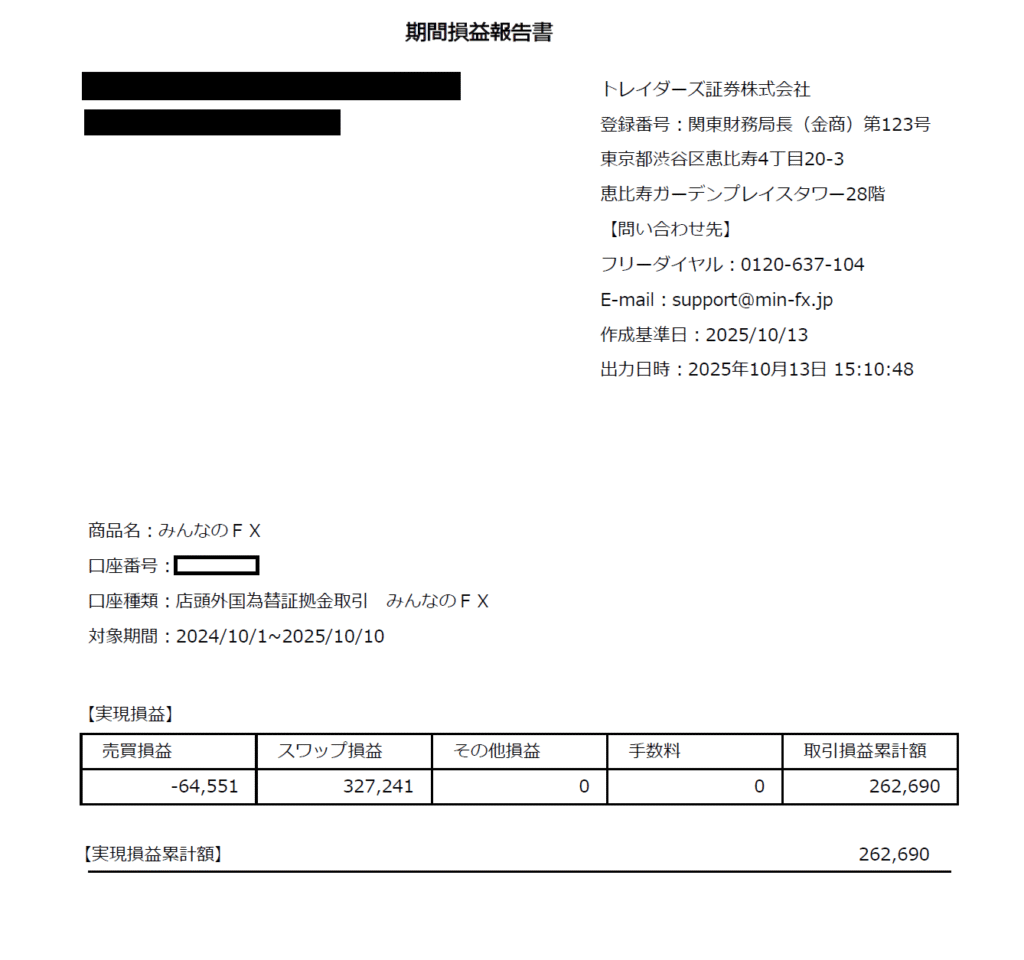 よって、2024年10月~2025年10月の期間のトルコリラの総収益だけを今回は報告します。